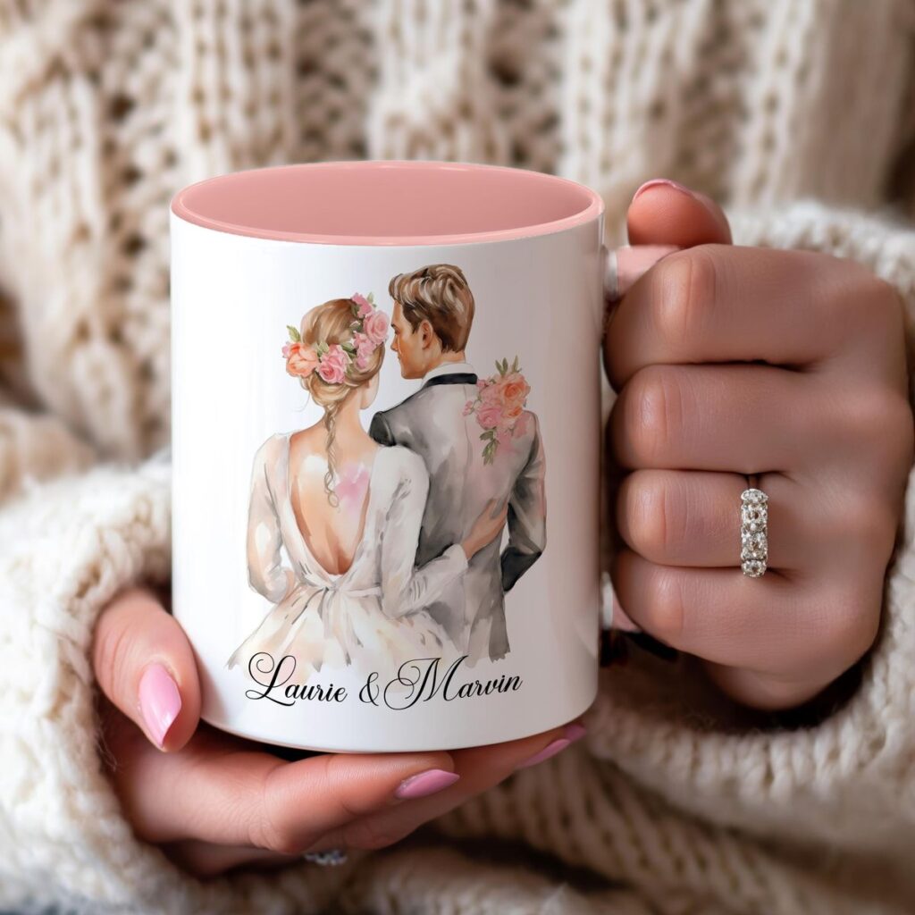 Creamos tazas pensadas para parejas que quieren un detalle bonito, útil y con un toque muy personal. Cada pieza se hace a mano, una a una, cuidando los colores, el diseño y el mensaje. La idea es sencilla: que los invitados se lleven algo que les recuerde ese día sin caer en lo típico. Una taza que acompañe desayunos, charlas y momentos tranquilos, y que siempre evoque la emoción de vuestra boda.